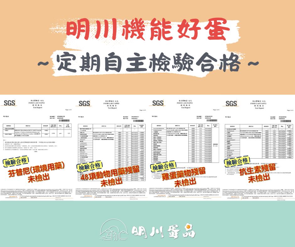 明川機能好蛋定期自主檢驗,無毒無藥殘無抗生素